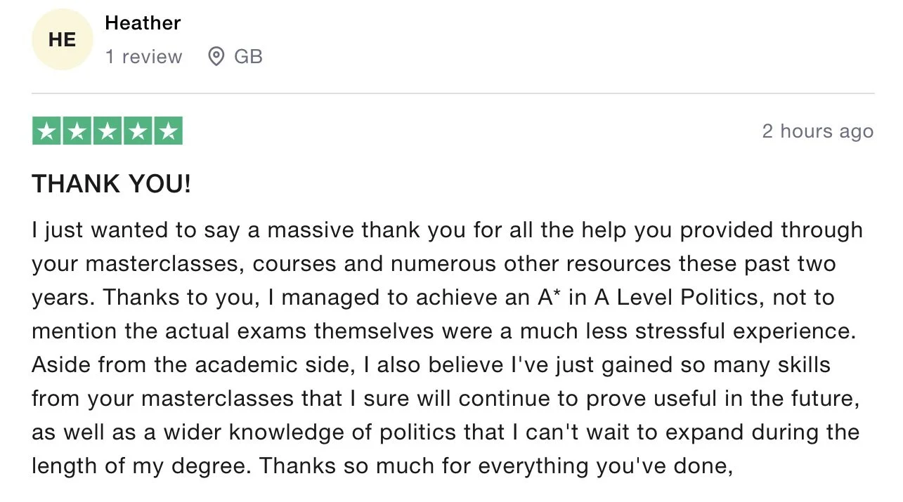 Do you need help writing A Level Politics essays? You’re in the right place! Join the free 30 min on demand class.